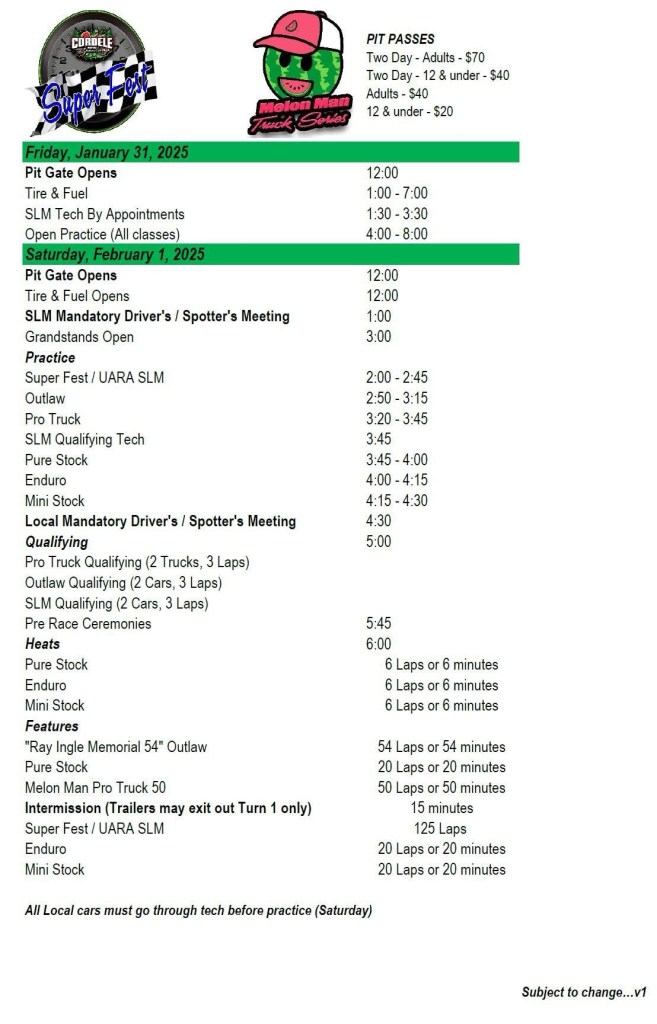 Friday, January 31st will see Super Late Model tech and open practice in the evening, however it’s Saturday, February 1st that will hold all of the notable racing action.