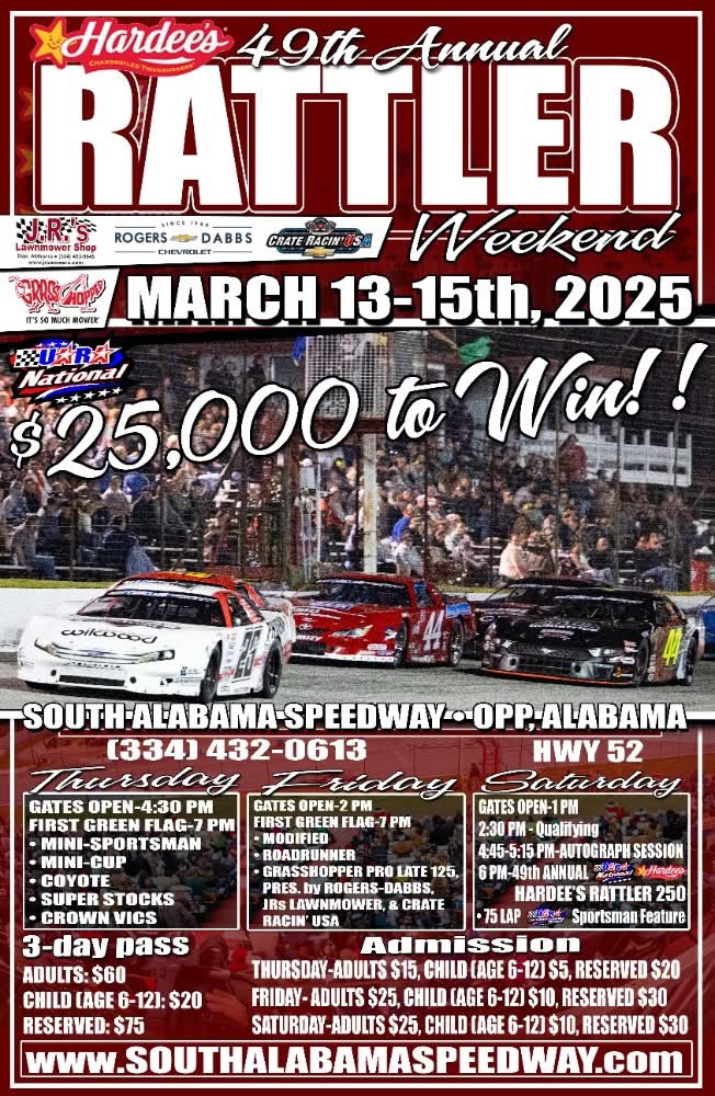 Kinston, AL — South Alabama Speedway’s biggest event of the year, the Rattler 250, returns yet again for the 2025 season.