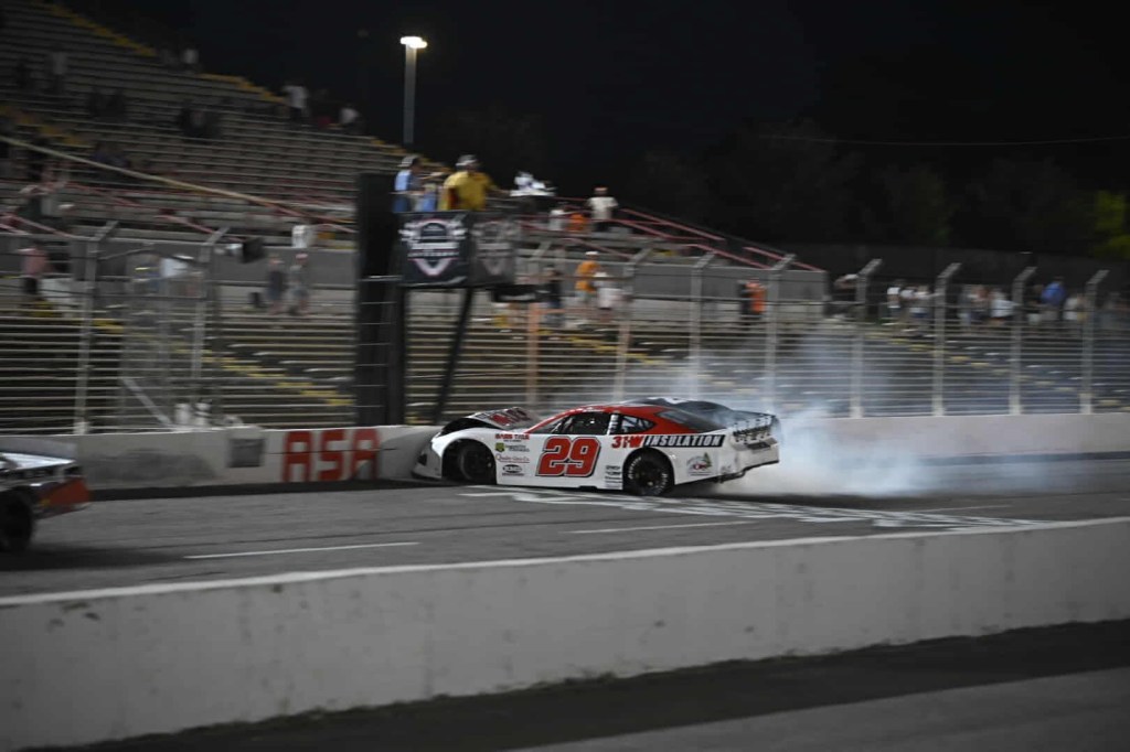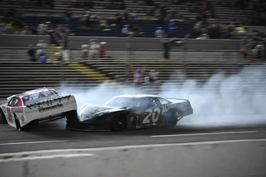 Behind Fetcho, Wright and Johnson tangled across the line, with Wright’s nose hitting the outside wall while sliding down the frontstretch via Johnson’s bumper. Wright would still score a second-place finish, with Johnson in third.