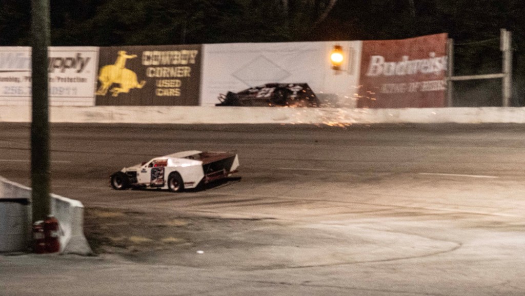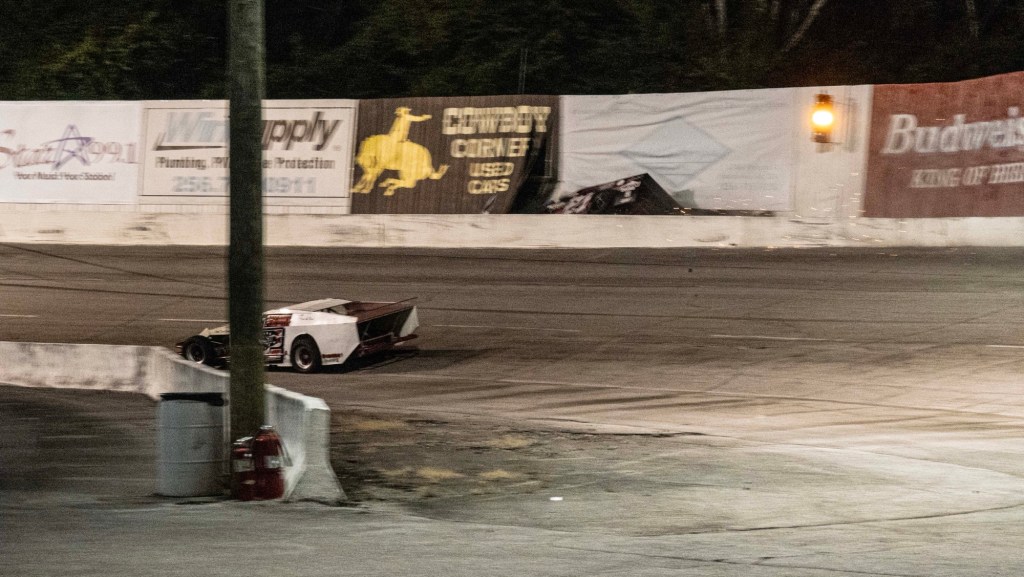 A particularly noteworthy and scary incident occurred at Huntsville during the Open-Wheel Modified feature. Bryson Mahan had a rough on-track accident, with his no. 21B machine going up and over the outside wall in Turn 3. Thankfully, Mahan was okay after the incident occurred.